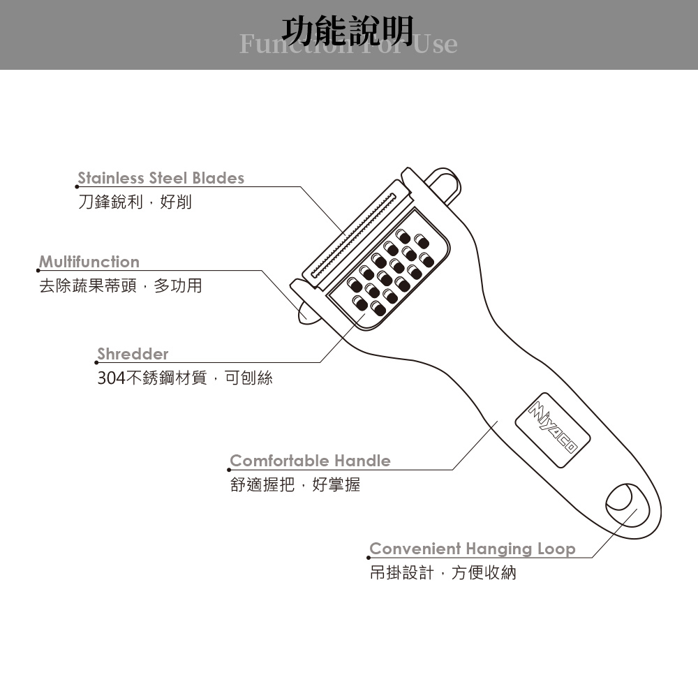 ・高級不銹鋼材質 削皮 刨絲 去除蒂頭 多種用途